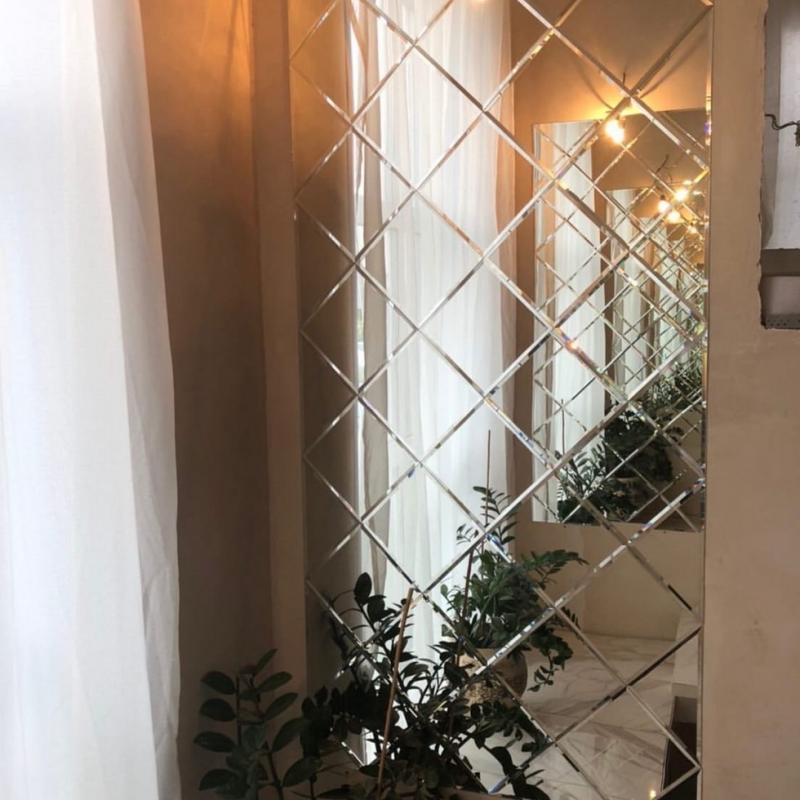 Использована зеркальная квадратная плитка с фацетом.