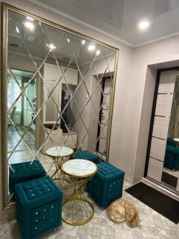 Зеркально панно было сделано из зеркальной плитки 30х30 см, размер панно 255х255 см